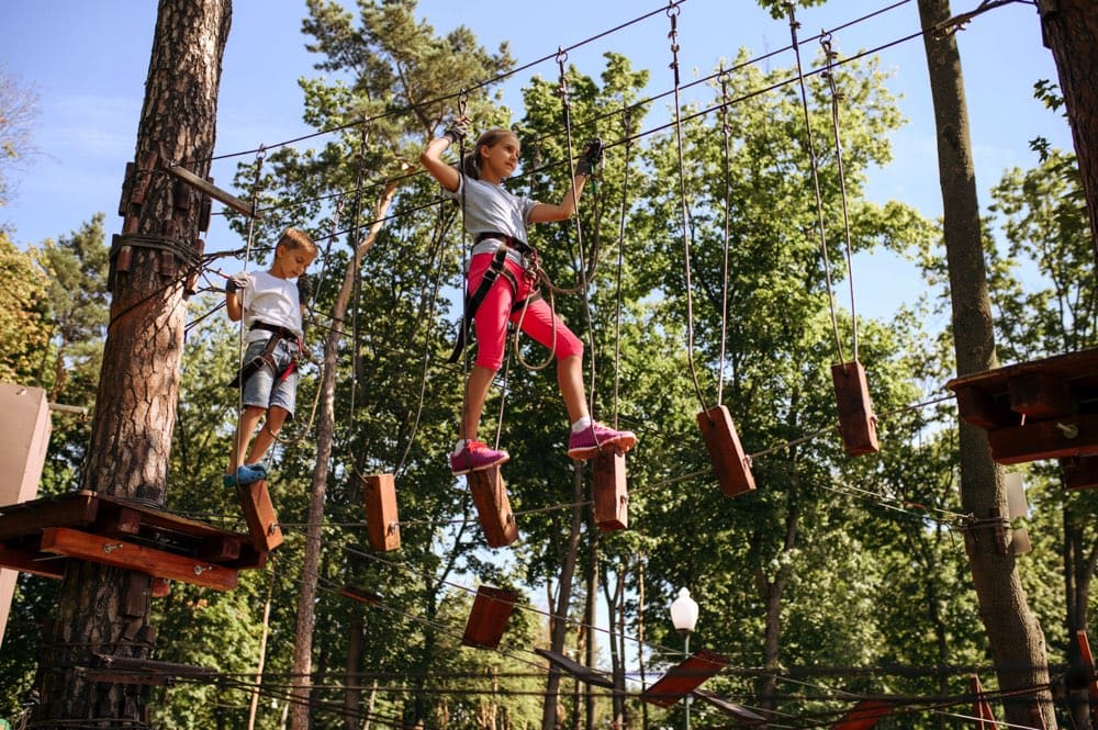 Forest ropes course, 3D archery course, team high ropes station,