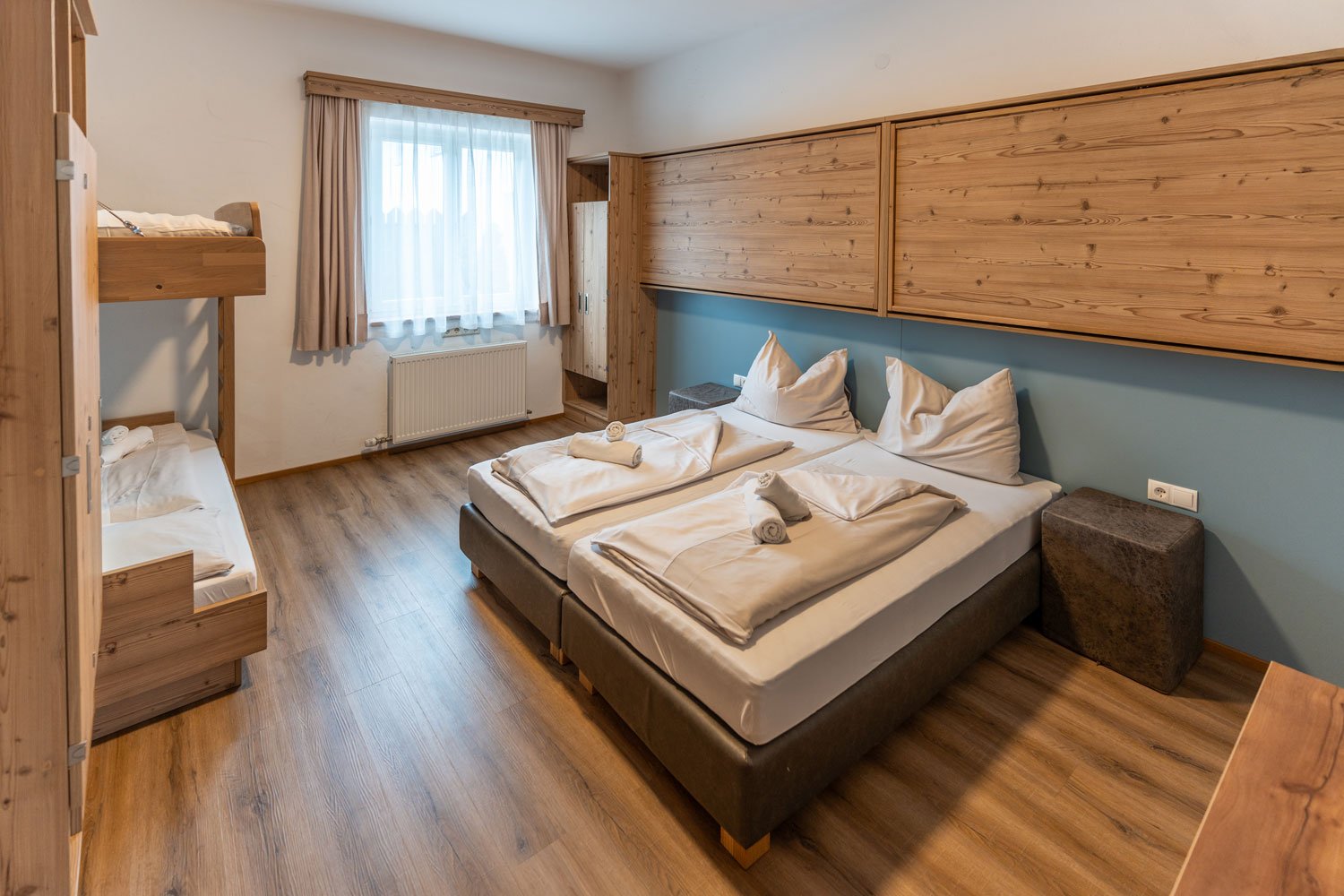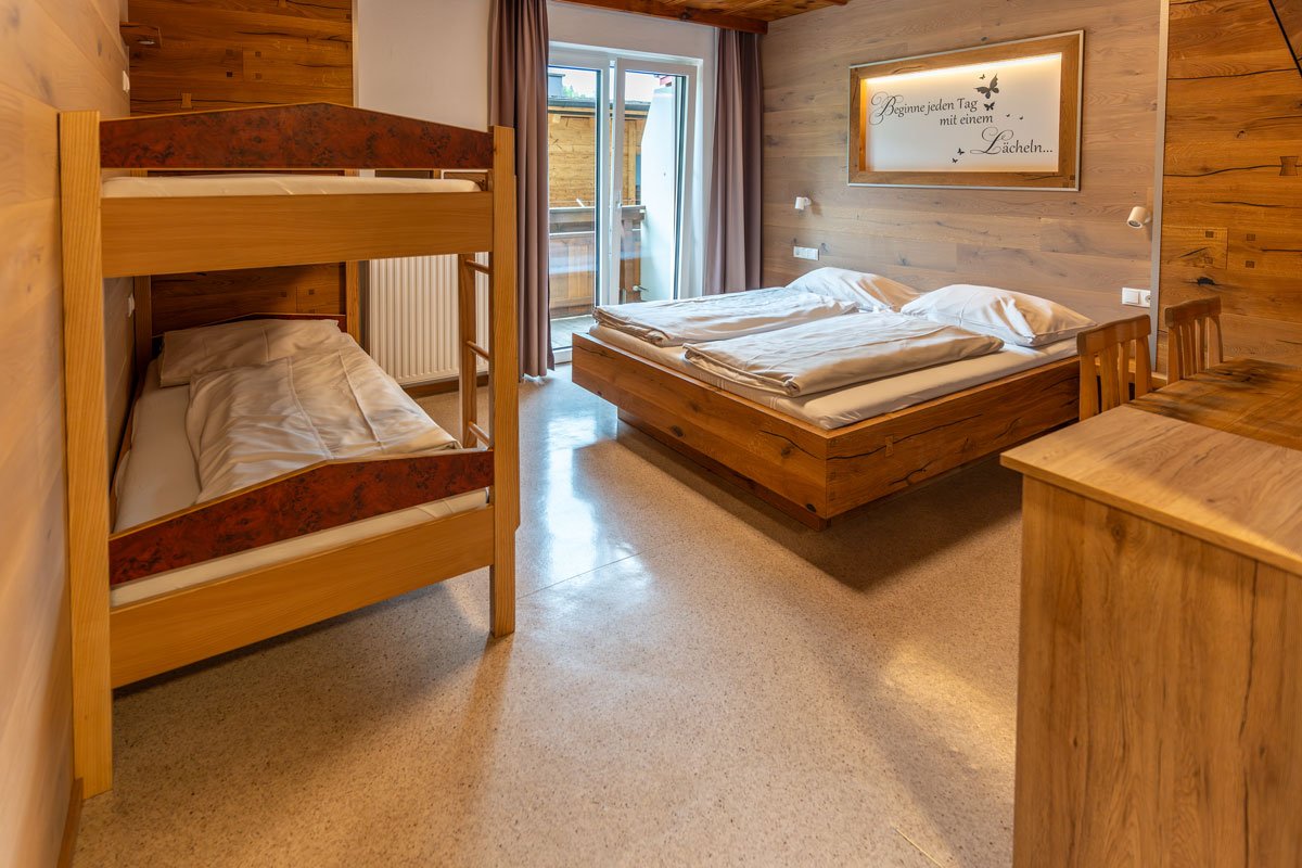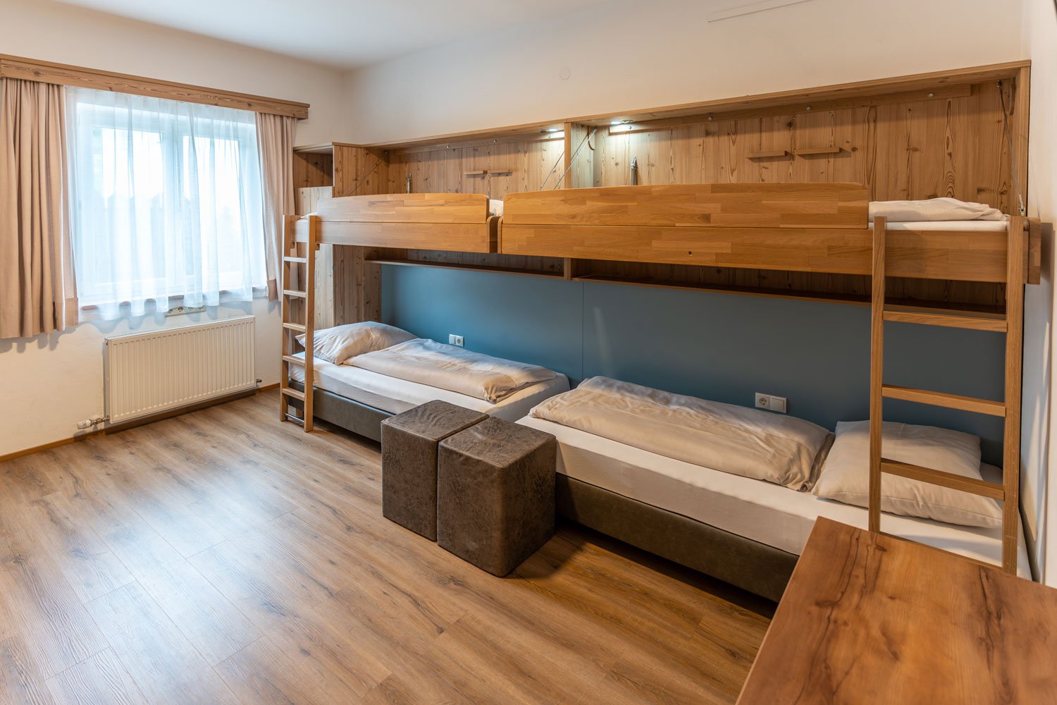 Unsere großzügigen Mehrbettzimmer bieten viel Raum für Schulklassen, Sportwochen, Familienurlaube und alle, die gerne in Gesellschaft reisen.