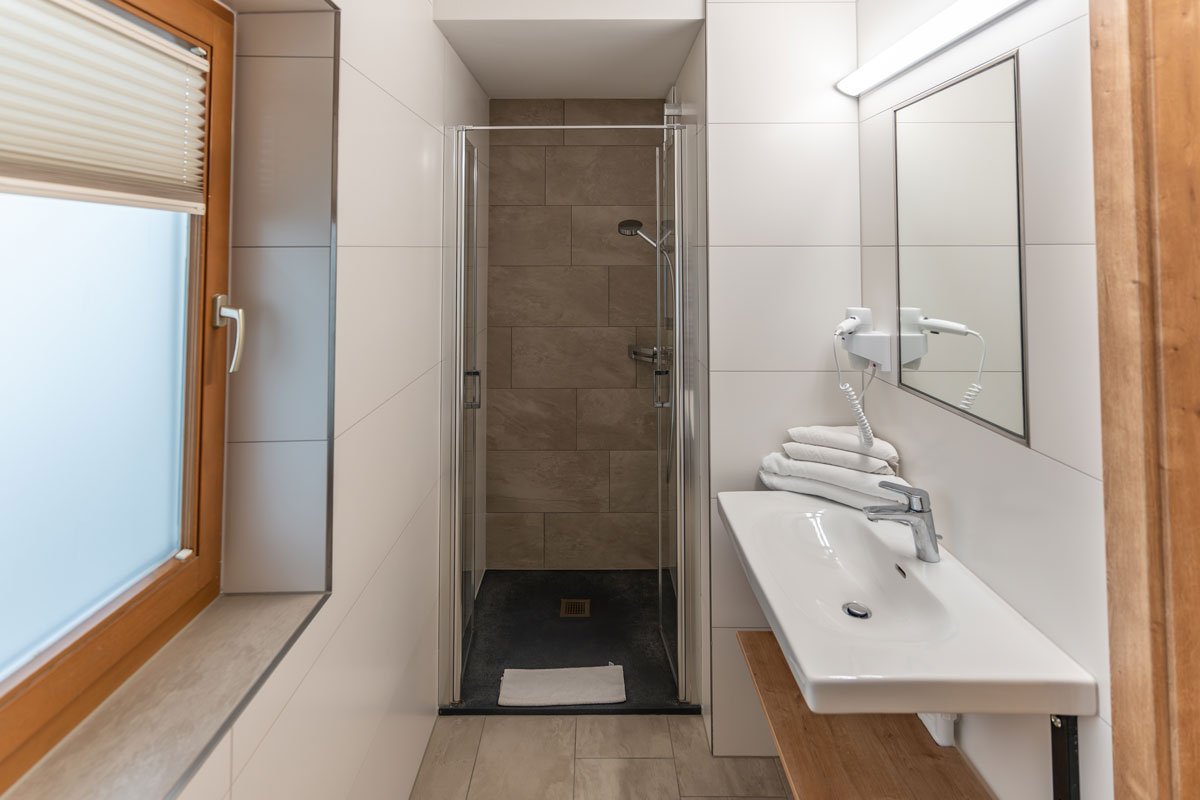 Jedes Zimmer ist mit einem separaten Bad und WC, sowie mit TV und W-Lan ausgestattet.